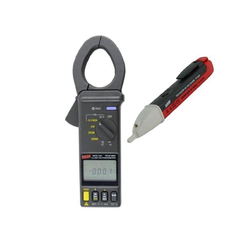 KIT ALICATE MULTI-FUNÇÕES DIGITAL (TRUE RMS) MOD. WDR-160 + DETECTOR DE TENSÃO MOD. TV-600 PORTÁTIL COM INDICAÇÃO VISUAL DESCRIÇÃO: Alicate multi-funções digital (true rms) mod. wdr-160: ESPECIFICAÇÕES TÉCNICAS: Display de Cristal Líquido (LCD) de 4 dígitos com dupla indicação: KW + PF, KVA + PF, V + A, A + Hz, V + Hz Tensão AC / DC: 600V Precisão: ± ( 0,5% + 5 díg. ) Corrente AC / DC: 1000A Precisão: ± ( 1,5% + 5 díg. ) Indicação de Pico de Tensão e Corrente Fator de Crista: < 5 Potência Ativa: 2 a 600KW Precisão: ± ( 2% + 5 díg. ) Potência Aparente: 2 a 600KVA Precisão: ± ( 2% + 1 díg. ) Fator de Potência ( Cos ) Resistência: 10KW Precisão: ± ( 1% + 5 díg. ) Freqüência: 5KHz Precisão: ± ( 0,5% + 5 dígitos ) Teste de Diodo e Continuidade Audível Memória: Máx., Mín. e Média Interface Serial: RS-232 (opcional) Armazena até 1600 dados (contínuo) ou 25 dados (manual) Temperatura de Operação: 0 a 50ºC Umidade de Operação: Máx. 80% RH Alimentação: 1 Bateria de 9V Dimensões / Peso: 260 x 93 x 45 mm / 470g Diâmetro do condutor: 46 mm DESCRIÇÃO: Detector de tensão mod. tv-600 portátil com indicação visual: ESPECIFICAÇÕES TÉCNICAS: Tensão: 90 a 1000V AC Categoria: CAT III 600V Fonte de Luz: LED Classificação: IP 40 Temperatura: -10 °C a 50 °C Umidade de Operação: 0% a 95% (0° a 30°C) Dimensão: 240x150mm Peso: 24g ACESSÓRIOS FORNECIDOS: Par de Pontas de prova Bateria Estojo Manual de instruções Detector de tensão TV-600