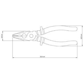 Informações GeraisCorpo forjado em aço especial e temperado. O aço carbono especial empregado na fabricação do produto, aliado à têmpera especial no gume de corte garantem maior resistência.Acabamento fosfatizado.Cabeça e articulação lixadas.Têmpera especial no gume de corte e mandíbulas.Produto em conformidade com a NBR 9699 e NR10. Isolação 1.000 V para uso em locais com baixas tensões de até 1.000 V em corrente alternada.Articulação suave para facilitar o uso.Os cabos possuem um formato ergonômico para aumentar o conforto.As ferramentas são produzidas e testadas conforme normas específicas.Recomendações de UsoUse óculos, luvas e outros equipamentos de proteção de acordo com a tarefa a ser executada.Observe as indicações de uso de cada tipo de alicate ou torquês. Nunca utilize um alicate ou torquês para cortar arames endurecidos, a não ser que tenha sido projetado para este fim.Nunca utilize o alicate ou torquês como martelo. Ele pode trincar ou até mesmo quebrar.Nunca exponha os alicates ou torqueses ao calor excessivo. Isto pode alterar o tratamento térmico aplicado no corte e afetar o seu desempenho.Sempre posicione o corte do alicate ou torquês perpendicularmente ao eixo do arame para uma operação mais rápida e segura.Utilize alicates isolados, identificados pela marcação 1.000 V no cabo, quando for necessário trabalhar em locais com corrente elétrica. Importante: nestes casos, inspecione a integridade da isolação elétrica, e, se aparecerem trincas na isolação, suspenda o uso imediatamente.Nunca aumente o comprimento dos cabos dos alicates ou torqueses. Isto amplifica a força exercida sobre a cabeça da ferramenta podendo quebrá-la.Nunca utilize o alicate ou torquês em porcas e parafusos. Para estes trabalhos, indica-se o uso de chaves de aperto.Lubrifique periodicamente a articulação. Isto aumenta a vida útil do produto e melhora sua performance.Armazene em local limpo e seco.Certificaçãoproduto em conformidade com a NBR9699 e NR10. Marca: Não Informado