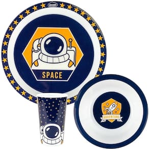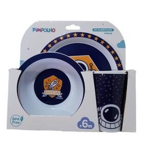 Kit para alimentação com 3 peças ideal para bebês e crianças - space astronauta Livres de bpa e ftalatos, os utensílios são leves , resistentes, e podem ir ao micro-ondas e freezer ;