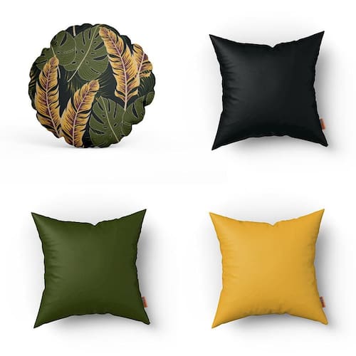 Kit com 3 almofadas Decorativas 40cm x 40cm e 1 almofada Decorativa Redonda 40cm x 40cm, ideal para ambientes como Sala de Estar e Varandas.