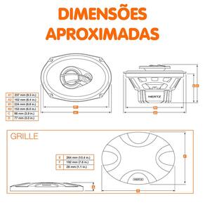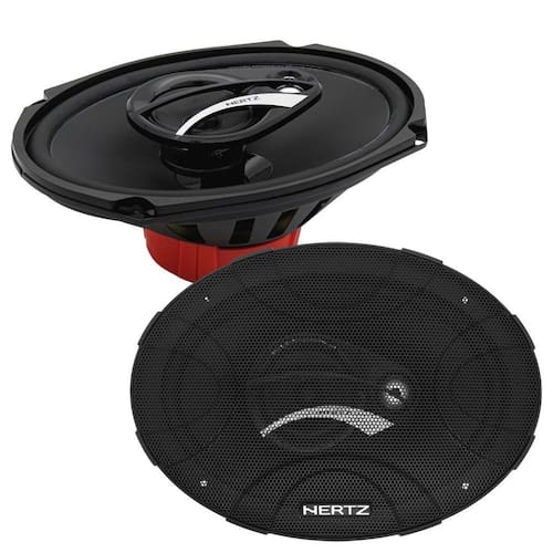 ESPECIFICAÇÕES TÉCNICAS: - Modelo: DCX690.3 - Marca: Hertz - Tipo: Alto-Falante Triaxial - Tamanho: 6x9 Polegadas - Potência - Contínua: 90W RMS - Manuseamento de potência - Pico: 180W RMS - Impedância: 4 Ohms - Profundidade mm (pol.) 98 (3.9) - Bobina de voz do woofer Ø mm (pol.): 25 (1,0) - Resposta de Frequência: 40Hz a 21.000 Hz - Tamanho do íman do woofer D x d x h mm (pol.) 80 x 40 x 15 (3,1 x 1,6 x 0,6) - Peso de um altifalante kg (lb.): 0,95 (2.09) - Íman do woofer Ferrite de fluxo de alta densidade - Íman do tweeter Ferrite de fluxo de alta densidade - Tela de Proteção: Sim
