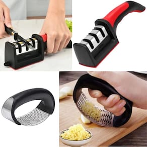 Descrição do anúncio: O kit espremedor de alho é um utensílio resistente e funcional + amolador de facas desenvolvido para agilizar o preparo de receitas. Além de triturar alho, pode ser para pimentas, castanhas e gengibre. O amolador é ideal para facas e tesouras essencial para se ter na cozinha. Conteúdo da embalagem: 1 espremedor de alho 1 amolador de facas Características: Material: aço inox Design elegante e ergonômico Fácil de limpar Evita contato direto com o alho Especificações: Material: aço inoxidável e abs Tamanho: 10,5 cm x 7,2 cm Peso: 106g Capacidade de trituração: 1 dente de alho a cada 2 segundos Principais perguntas sobre o produto e respostas: 1 este espremedor pode ser para outros alimentos além do alho Sim, ele pode ser para triturar pimentas, alguns tipos de castanhas e gengibre. 2 é fácil de limpar Sim, o design permite uma limpeza fácil e rápida. 3 de que material é feito o espremedor Ele é feito de aço inoxidável e abs. 4 qual é a capacidade de trituração do espremedor Ele pode triturar 1 dente de alho a cada 2 segundos. 5 o espremedor evita o cheiro de alho nas mãos Sim, ao usar o espremedor, você evita o contato direto com o alho, eliminando o cheiro nas mãos. 6 este afiador pode ser para afiar lâminas serrilhadas Não, ele não é adequado para lâminas serrilhadas. 7 preciso de água ou óleo para usar o afiadorNão, o afiador não necessita de água nem óleo. 8 é fácil de usar Sim, é muito simples e eficiente de usar, com instruções claras para cada etapa de afiação. 9 ele é seguro para usar Sim, mas deve ser manuseado com cuidado e mantido fora do alcance de crianças. 10 o afiador é compacto R: sim, ele é compacto e fácil de armazenar, ideal para cozinhas com espaço limitado. Marca: Não Informado