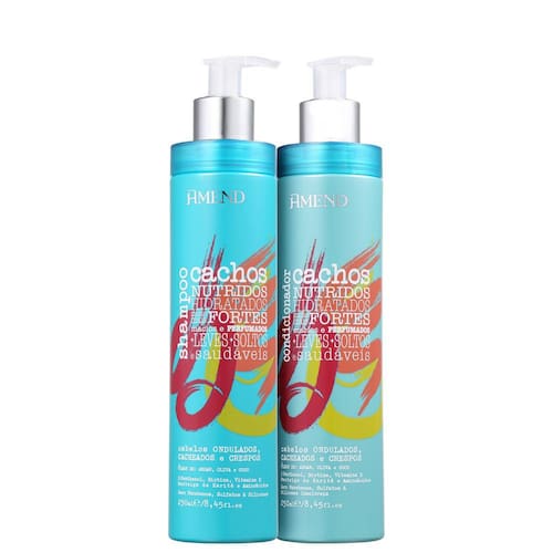 Kit para cabelos ondulados, cacheados e crespos. Kit Amend Cachos Duo oferece nutrição e hidratação para deixar os fios macios, controlados e fortalecidos.