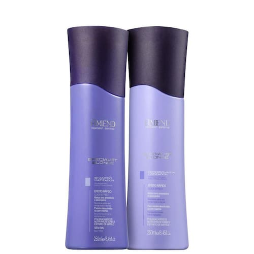 Kit para cabelos loiros ou com mechas. Kit Amend Specialist Blonde potencializa o brilho, neutraliza a cor e garante maciez.