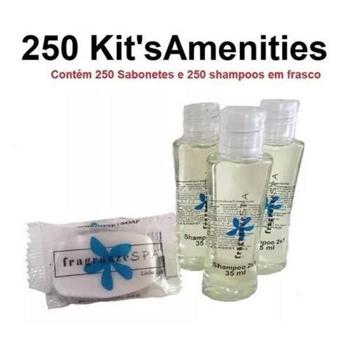 3. Quantas unidades de sabonete e shampoo estão incluídas no kit? Cada kit inclui 250 unidades de sabonetes de 13g e 250 unidades de shampoo em frasco de 30ml.