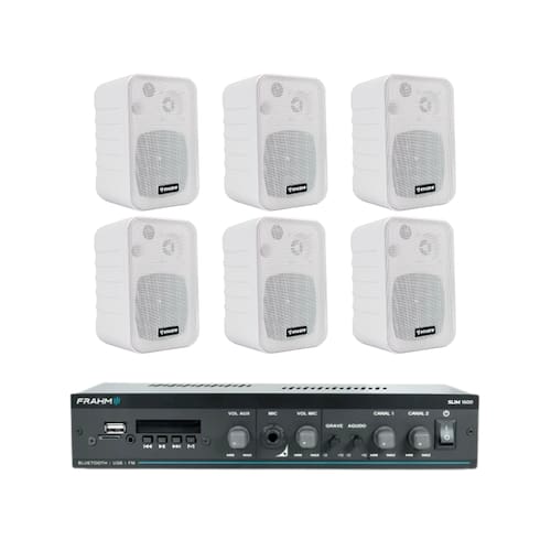 Kit Amplificador Frahm Slim 1600 G5 + 6 Caixas Acústicas ENC70 Encore 1 - Branco -