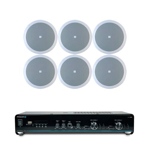 Para a distribuição sonora, o kit inclui seis caixas acústicas circulares de embutir (6 polegadas). Estas arandelas utilizam um design coaxial de duas vias, que garante a reprodução fiel de agudos e graves de forma integrada. O resultado é um som claro, amplo e envolvente, ideal para música de fundo em residências, consultórios ou áreas de lazer. O conjunto se destaca pela instalação limpa e discreta, pois as caixas se integram ao teto e o amplificador pode ser facilmente acomodado em nichos ou racks. Ean: 7896673817914