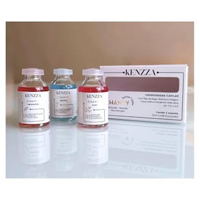 Ampolas Chanty Power Dose 3 unidades x 20ml Kenzza Alta Rentabilidade: até 3 aplicações em cada ampola Tratamento Intensivo em Dose Certa A nova linha de ampolas Kenzza foi desenvolvida para entregar resultados rápidos, eficazes e altamente concentrados, cuidando da saúde dos seus fios com precisão. Cada fórmula traz ativos potentes e específicos para as principais necessidades do cabelo, oferecendo soluções práticas tanto para o quanto para a rotina em casa. Com tratamentos divididos em etapas - hidratação, nutrição e reconstrução -, nossas ampolas são ideais para compor um cronograma capilar completo ou atender demandas pontuais, como fios ressecados, danificados ou sem brilho. Ampola Chanty Hidrata 20ml Kenzza 1 Revitalização Hidratante Express A Ampola Chanty Hidrata da Kenzza foi criada para oferecer um cuidado imediato e eficaz aos fios ressecados e opacos. Com uma fórmula concentrada e de rápida absorção, promove uma revitalização profunda, devolvendo a maciez, o brilho e a leveza que seu cabelo precisa. Enriquecida com ativos hidratantes de alta performance, é ideal para recuperar a saúde capilar em poucos minutos, sem pesar os fios. Ação instantânea Ideal para todos os tipos de cabelo Passo 1 do cronograma capilar Ampola Chanty Nutri 20ml Kenzza 2 Nutrição Intensa e Duradoura A Ampola Chanty Nutri da Kenzza foi desenvolvida para repor os lipídios essenciais dos fios, combatendo o ressecamento e o frizz de forma profunda e duradoura. Sua fórmula concentrada age diretamente na fibra capilar, devolvendo a emoliência, brilho e maciez, deixando os cabelos mais saudáveis, maleáveis e protegidos das agressões externas. Com ativos altamente nutritivos, é ideal para cabelos opacos, porosos ou com excesso de volume. Nutrição profunda Antifrizz e brilho imediato Passo 2 do cronograma capilar Ampola Chanty Reconstrói 20ml Kenzza 3 Reconstrução Capilar Intensiva A Ampola Chanty Reconstrói da Kenzza é a solução ideal para cabelos fragilizados, elásticos, quebradiços ou danificados por químicas e agressões externas. Sua fórmula concentrada atua diretamente na fibra capilar, promovendo uma reposição intensa de proteínas e aminoácidos, devolvendo a força, resistência e estrutura dos fios. Com ativos poderosos como colágeno e biotina, essa ampola é essencial para quem busca uma recuperação profunda e duradoura. Fortalecimento da fibra capilar Redução da quebra Passo 3 do cronograma capilar Modo de uso: Dilua 1 medida da ampola em 2 medidas de água morna e misture até formar um creme. Com os cabelos úmidos e limpos, aplique mecha por mecha. Deixe agir de 10 a 20 minutos, enxágue completamente e finalize conforme preferir.