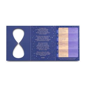 Representante da queda eterna do tempo, a ampulheta também é uma simbologia de como é sempre possível voltar às origens e recomeçar. Com esse lindo kit desenvolvido em parceria com a Madama Brona, você poderá observar e administrar para onde você dedica sua energia diária, e separar melhor as atividades que exigem e precisam mais de atenção.