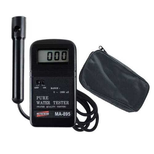 ANALISADOR DE ÁGUA MA-895: Display de cristal líquido (LCD) de 3 1/2 dígitos Escala: 0 a 1999 uS (uS= micro Simens) Precisão: ± 4% + 3 dígitos Resolução: 1 uS Sensor separado do aparelho Compensação de temperatura: Automática (0 a 50ºC) Temperatura de operação: 0 a 50ºC Umidade de operação: Máx. 80% RH Alimentação: 1 bateria de 9V Dimensões / Peso: 131 x 70 x 25 mm / 220g