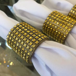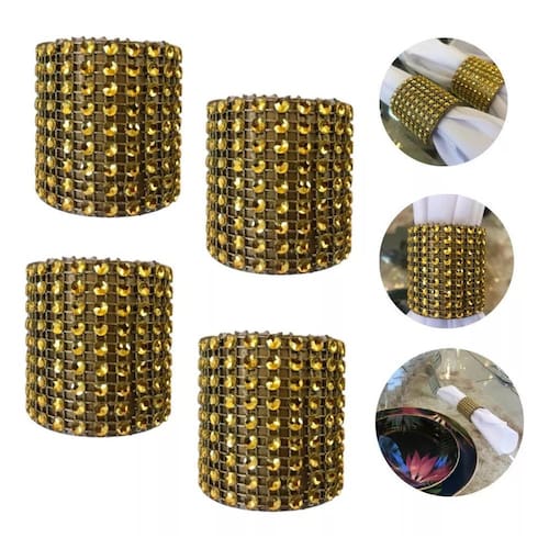Fabricado em poliresina revestido com strass dourado, esse anel possui um aspecto muito brilhante, garantindo um visual deslumbrante à sua mesa. Além disso, sua durabilidade e resistência à ferrugem tornam esse acessório perfeito para uso contínuo.