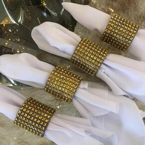 Fabricado em poliresina revestido com strass dourado, esse anel possui um aspecto muito brilhante, garantindo um visual deslumbrante à sua mesa. Além disso, sua durabilidade e resistência à ferrugem tornam esse acessório perfeito para uso contínuo.