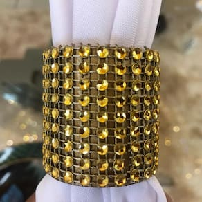 Fabricado em poliresina revestido com strass dourado, esse anel possui um aspecto muito brilhante, garantindo um visual deslumbrante à sua mesa. Além disso, sua durabilidade e resistência à ferrugem tornam esse acessório perfeito para uso contínuo.
