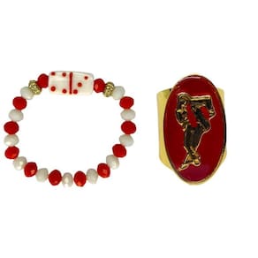 Kit Anel + Pulseira Zé Pelintra cristal e Silicone Kit Anel + Pulseira Zé Pelintra cristal e Silicone O Kit Pulseira Anel Cranio e Zé Pelintra da Bialluz possui pedras de alta qualidade feitas de forma artesanal com muito carinho. Com tamanho único, mas muito versátil por conta do silicone, é perfeita para qualquer pessoa. Cheia de boas energias e carregada de fé nossa pulseira emanará muita paz em sua vida Enviamos a sua pulseira em até 24 horas após a confirmação de pagamento Dimensões aproximadas: PulseiraTamanho das pedras: 8 mmAnel 3,20 Por ser uma peça feita artesanalmente podem ocorrer pequenas variações nas cores ou tamanhos. Caso tenha alguma dúvida nos mande mensagem que respondemos rapidinho para te ajudar da melhor forma possível Marca: Meta Atacado