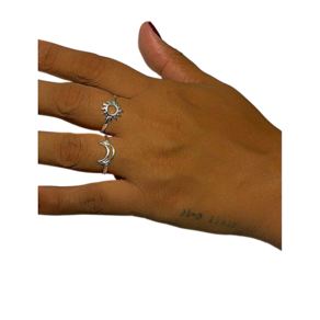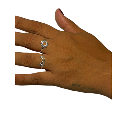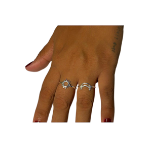 Kit Anel Sol e Lua de Prata Legítima 925. Especificações: Anel Sol, largura do aro, 2 mm, Anel Meia Lua, largura do aro 2 mm. Peças feitas em prata legítima 925. Acompanha embalagem para presente e certificado de garantia vitalícia.