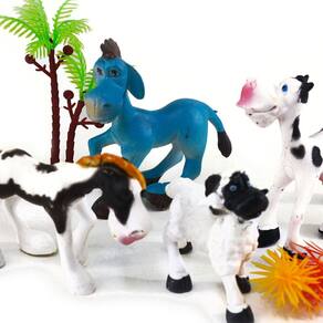 KIT Animais de Plástico 07 Peças Fazenda Kit Animais Fazenda 7 Peças - Ideal para a diversão das crianças. - Estimula a imaginação da criança. - Produto feito de plástico resistente. - Contém 2 árvores.;\nEspecificações:\nMarca : ARK\nTipo de material : Plástico\nCores ou Estampa : Modelos\nDimensões do Produto : 25 X 17 X 3,5 CM\nDimensões da Embalagem : 25 X 17 X 3,5 CM\nPeso Bruto (Gramas) : 0.180 Marca: Não Informado