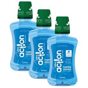 Kit Antisséptico Bucal Ultra Action Menta Alaska 250ml com 3 unidades