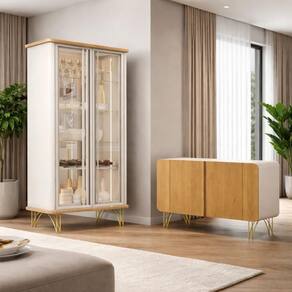 Transforme sua sala em um ambiente elegante e acolhedor com o Conjunto Buffet Benvenutto com Cristaleira Évora.