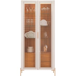 Transforme sua sala de jantar em um espaço de elegância e sofisticação com o deslumbrante conjunto de Aparador Buffet Lia Com Cristaleira Tarsila Orgânico D05 Off White Freijó, da Lyam Decor.