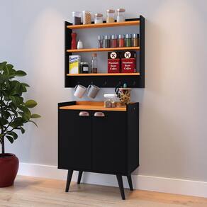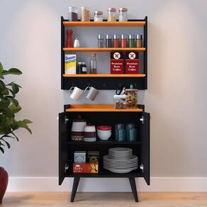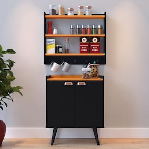 Enquanto isso, o Armário Amélia oferece funcionalidade com suas duas prateleiras perfeitamente adequadas para acomodar condimentos e cinco ganchos que tornam a tarefa de armazenar canecas, panos de prato e outros itens essenciais muito mais conveniente.