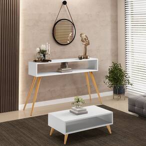 O conjunto de Aparador Mônaco com Mesa de Centro Cannes Pés Palito Branco, da Lyam Decor, é a escolha perfeita para adicionar estilo e funcionalidade à sua sala de estar. Com seus pés palito e design retrô, esse conjunto irá encantar os amantes de decoração vintage. A mesa de centro possui um nicho espaçoso, proporcionando espaço adicional para armazenar revistas, controles remotos e outros itens essenciais do dia a dia. Além disso, sua superfície generosa é perfeita para acomodar bandejas de petiscos durante as noites de filmes ou para exibir objetos decorativos que reflitam sua personalidade única. Já o aparador versátil é um destaque por si só. Com seu nicho, ele oferece uma solução prática para organizar seus pertences e manter sua sala de estar arrumada. Seja na sala de estar, recepção, hall de entrada ou corredor, esse aparador adiciona um toque retrô e elegante a qualquer ambiente. Com esse jogo de Aparador com Mesa de Centro, você terá não apenas móveis funcionais, mas também peças que agregam estilo e personalidade ao seu espaço. Não deixe essa oportunidade passar e garanta já o seu kit! Transforme sua sala de estar em um ambiente acolhedor e cheio de charme hoje mesmo!