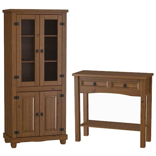 A celebração do rústico com distinção. A Cristaleira de Madeira Majestic protege e exibe suas peças mais especiais atrás de portas de vidro, enquanto o Aparador Rústico com tampo frisado oferece armazenamento sólido. Juntas, formam uma peça de presença imponente para sua sala de jantar, onde o acabamento imbuia fosco e o ferro fundido contam uma história de tradição e qualidade. A Linha Majestic é mais que móveis rústicos para sala de jantar, é tradição que se expõe com orgulho. Adquira já o seu conjunto e surpreenda-se!