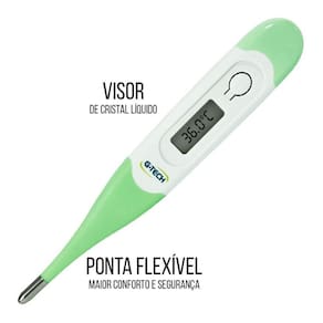Conteúdo da embalagem: - 01 Aparelho Digital de Pressão Digital G-tech Premium - 01 Braçadeira de pulso tamanho 13,5 a 19,5 centímetros (circunferência de Pulso) - 01 Manual de Instruções em português 1- Termometro Digital Axilar Gtech Incluso