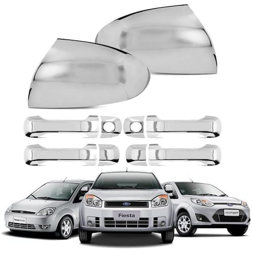 Kit aplique cromado capa maçanetas retrovisor fiesta 2004
