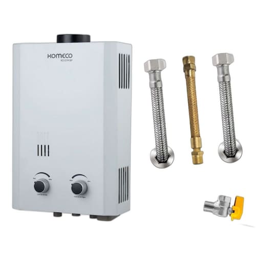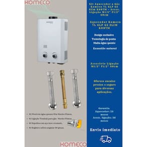 Kit Aquecedor de Água Komeco 7L GLP G2 SLIM KO07M + Acessórios Ligação a gás M1/2" F1/2" 40cm