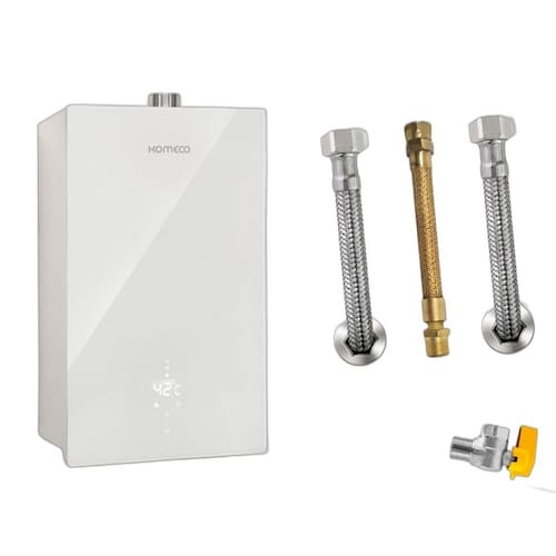 1  Kit Aquecedor Komeco KO26WHDECOR 26L GN + Acess. Ligação De Aquecedor A Gás Komeco M1/2" F1/2" 40cm (02 Flexíveis de 40cm para água quente ou fria (1/2 pol. Macho / Fêmea), 01 Ligação Tomback de 40cm (1/2 pol. Macho / Fêmea) para gás, 03 Espelhos em aço inox cromado e 01 Registro esfera angular em L )