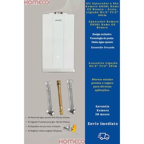 Kit Aquecedor de Água Komeco KO36L Home GN Branco + Acessórios Ligação a gás Komeco M1/2" F1/2" 40cm