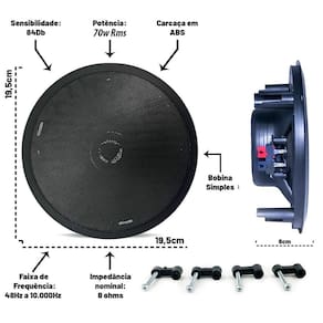 Kit Arandela Coaxial 6p 70w 8r Redonda Pt Leson Modelo: 2LSREDPT - Redonda O Kit Arandela 6 Leson 2LSREDPT é a combinação perfeita de qualidade e resistência, proporcionando uma experiência sonora excepcional em qualquer ambiente. Compatível com alexa e google assistente, este modelo oferece controle total do som via Bluetooth, permitindo que você preencha seus espaços com suas músicas favoritas. O kit inclui uma arandela ativa de 70W Rms e uma passiva, projetadas para instalação em diversos tipos de forro, como drywall, gesso, madeira e PVC, com garras ajustáveis para fixação. A arandela ativa é alimentada por fonte bivolt e controlada através do dispositivo Bluetooth conectado a ela. A arandela passiva, por sua vez, é conectada à ativa por meio de fio paralelo não incluso e dispensa alimentação elétrica direta. Além disso, a versatilidade deste kit permite a conexão de até três arandelas passivas adicionais à arandela ativa, proporcionando uma experiência sonora em todo o ambiente. Cor: Preta Potência: Nominal: 70W Rms Impedância: 8 Ohms Dimensões: 6x19,5x19,5 cm Informação adicional: Características técnicas da Arandela ativa: Alto Falante: 6 polegadas Faixa de Frequência: 100 - 20kHz Alto falante mid bass com borda de espuma Características técnicas da Arandela passiva: Alto Falante: 6 polegadas Tweeter coaxial com piezo duplo Faixa de Frequência: 100 - 20kHz Conteúdo da embalagem: 1 Arandela Redonda Ativa 1 Arandela Redonda Passiva 1 Fonte de alimentação Bivolt Kits de suportes de fixação 1 Manual Recomendamos que a instalação seja feita por um profissional.