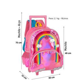 Mochila com rodas: Confeccionada em poliéster fechamento em zíper puxadores personalizados compartimentos espaçosos 2 bolsos laterais para garrafa possui rodas e alça de mão design exclusivo etiqueta de identificação na parte traseira Medidas aproximadas: Altura mochila+alça : 75 cm altura mochila : 40 cm largura: 15 cm comprimento: 30 cm