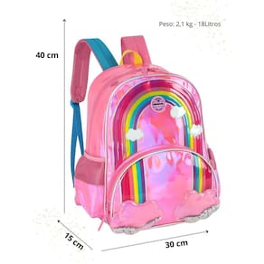 Mochila de Costas: Confeccionada em Poliéster Fechamento em zíper Puxadores personalizados Compartimentos espaçosos 2 bolsos laterais para garrafa Design exclusivo Etiqueta de identificação na parte traseira Medidas aproximadas: Altura: 40 cm Largura: 15 cm Comprimento: 30 cm