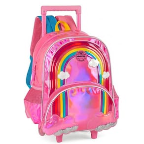 Mochila com rodas: Confeccionada em poliéster fechamento em zíper puxadores personalizados compartimentos espaçosos 2 bolsos laterais para garrafa possui rodas e alça de mão design exclusivo etiqueta de identificação na parte traseira Medidas aproximadas: Altura mochila+alça : 75 cm altura mochila : 40 cm largura: 15 cm comprimento: 30 cm