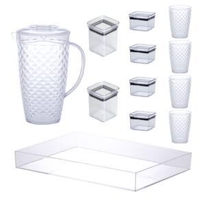 Com o Kit para Área Gourmet Soft, você estará preparado para receber seus convidados com estilo e praticidade. Os copos e a jarra permitem que você sirva suas bebidas de forma elegante, enquanto o pote para especiarias e a bandeja adicionam funcionalidade e charme à sua área gourmet.