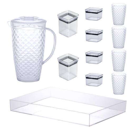 A jarra inclusa no kit é ideal para servir sucos, água ou até mesmo preparar deliciosas bebidas como sangrias ou limonadas. Seu design elegante e funcionalidade tornam-na uma peça indispensável na sua área gourmet.