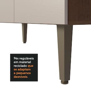 Materiais de qualidade: conta com puxadores no estilo ponto com textura, dobradiças metálicas e pés em material reciclado com ajuste para pequenos desníveis.