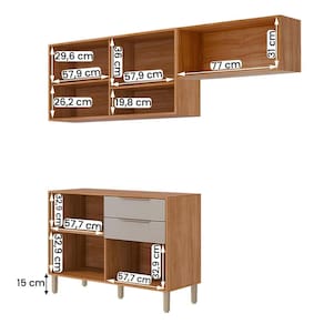 Feita em MDF de alta qualidade, oferece 5 portas com dobradiças soft close, 2 gavetas com corrediças telescópicas e pés reguláveis para praticidade total.