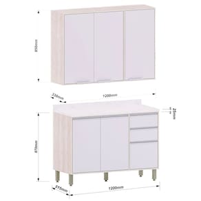 • Largura: Armário: 120 cm; Balcão: 120 cm