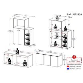 Dimensões do produto montado: Armário Aéreo - Altura: 39,5cm | Largura: 93cm | Profundidade: 31,5cm Balcão - Altura: 126,5cm | Largura: 90cm | Profundidade: 38cm *Você pode consultar as medidas detalhadas na imagem técnica do produto.