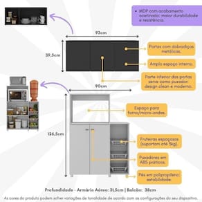 Armário Aéreo - Altura: 39,5cm | Largura: 93cm | Profundidade: 31,5cm
