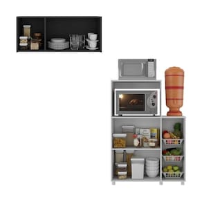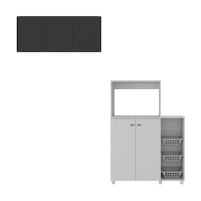 Kit Armário De Cozinha 3 Portas Com Balcão Multiuso-fruteira Mp2235 Branco-preto Branco-preto