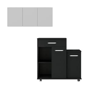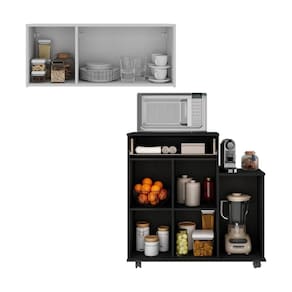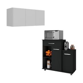 Kit Armário De Cozinha 3 Portas Com Balcão Multiuso Multimóveis Mp2234 Branco-preto Branco-preto