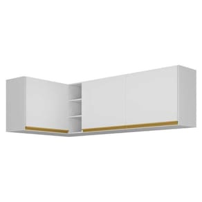 Kit Armário De Cozinha Aéreo Canto 90cm E Aéreo 120cm Veneza Multimóveis Mp2148 Branco/dourado Branco/dourado O Kit Armário de Cozinha Aéreo Canto 90cm e Aéreo 120cm Veneza Multimóveis MP2148 é a solução perfeita para deixar sua cozinha elegante e funcional. Fabricado em MDP com acabamento acetinado (cerca de 20% de brilho), garante durabilidade e resistência. Com suas três portas equipadas com lindos puxadores em ABS, três prateleiras internas e nichos, você terá fácil acesso aos seus utensílios de cozinha, tendo tudo ao alcance das mãos na hora de preparar suas melhores receitas. Além disso, o kit é composto por dois módulos separados que podem ser montados da forma que preferir, harmonizando o ambiente e otimizando os espaços. Conteúdo da Embalagem: 1 (um) Armário Aéreo de Canto 90cm 1 (um) Armário Aéreo 120cm Manual de Montagem Kit Ferragem