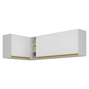 O Kit Armário de Cozinha Aéreo Canto 90cm e Aéreo 120cm Veneza Multimóveis MP2148 é a solução perfeita para deixar sua cozinha elegante e funcional. Fabricado em MDP com acabamento acetinado (cerca de 20% de brilho), garante durabilidade e resistência. Com suas três portas equipadas com lindos puxadores em ABS, três prateleiras internas e nichos, você terá fácil acesso aos seus utensílios de cozinha, tendo tudo ao alcance das mãos na hora de preparar suas melhores receitas. Além disso, o kit é composto por dois módulos separados que podem ser montados da forma que preferir, harmonizando o ambiente e otimizando os espaços.