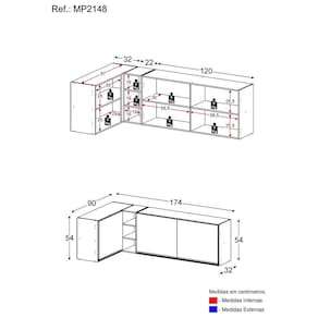 Conteúdo da Embalagem: 1 (um) Armário Aéreo de Canto 90cm 1 (um) Armário Aéreo 120cm Manual de Montagem Kit Ferragem