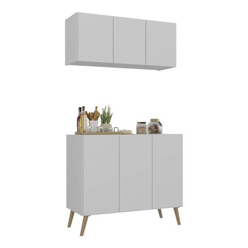 O Kit Armário de Cozinha Aéreo e Balcão 3 Portas Retrô Multimóveis MP2168 é perfeito para quem busca praticidade e organização no ambiente culinário. Fabricado em MDP (15mm) com acabamento acetinado (cerca de 20% de brilho), garante durabilidade e resistência. Composto por um balcão e um armário aéreo com 3 portas e prateleiras, oferece amplo espaço interno para organizar todos os utensílios de cozinha de forma prática. O balcão ainda possibilita apoiar os itens mais utilizados no dia a dia, mantendo tudo sempre à mão na hora de preparar suas receitas favoritas. Com design clean que confere um visual moderno e sofisticado, este kit combina perfeitamente com qualquer tipo de decoração. Os pés retrô em polipropileno oferecem estabilidade e um charme vintage ao balcão.