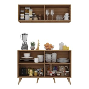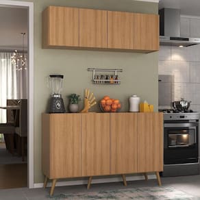 O Kit Armário de Cozinha Aéreo e Balcão 4 Portas Retrô Multimóveis MP2170 é perfeito para quem busca praticidade e organização no ambiente culinário. Fabricado em MDP (15mm) com acabamento acetinado (cerca de 20% de brilho), garante durabilidade e resistência. Composto por um balcão e um armário aéreo com 4 portas e prateleiras, oferece amplo espaço interno para organizar todos os utensílios de cozinha de forma prática. O balcão ainda possibilita apoiar os itens mais utilizados no dia a dia, mantendo tudo sempre à mão na hora de preparar suas receitas favoritas. Com design clean que confere um visual moderno e sofisticado, este kit combina perfeitamente com qualquer tipo de decoração. Os pés retrô em polipropileno oferecem estabilidade e um charme vintage ao balcão.