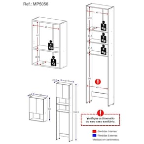 Acabamento: Finish Foil | Material: MDP | Tonalidade: Branco | Referência do Modelo: MP5056 | Coleção: Conjunto de Banheiro | Sistema de Montagem: O produto acompanha manual de montagem juntamente com kit ferragem. | Instruções de Cuidado: Limpar com pano seco para retirar o pó. Não utilizar produtos químicos ou abrasivos a limpeza. Não aplicar lustra móveis. | Produto Composto por: 1 armário para vaso, 1 armário aéreo, manual de montagem e kit ferragem. | Tamanho (L x A x P): 48 x 185 x 21 | Altura Montado: 185 | Largura Montado: 48 | Profundidade Montado: 21 | Produto: Armários Modulares de Banheiro | Tipo de Material: Madeira | Peso do Produto: 24 | Garantia do Fabricante: 3 | Inclui Espelho: Não | Inclui pia: Não | Requer Montagem: Sim | Fabricante: Multimóveis | RBN: 17100652011 | Quantidade de Portas: 4 | Corrediça: N/A | Quantidade de Gavetas: 0 | Quantidade de Puxadores: 0 | Altura (cm): 185 cm | Largura (cm): 48 cm | Profundidade (cm): 22 cm | Inclui torneira: Não | Peso (kg): 24 kg | Altura do Produto com Embalagem: 20 | Largura do Produto com Embalagem: 28 | Comprimento do Produto com Embalagem: 188 | Peso do Produto com Embalagem: 24 | Nome do Produto no Fornecedor: Kit Armário Lavanderia e Banheiro para Vaso Sanitário Multimóveis MP5056 Branco | Descrição do Tamanho: (L x A x P): 48 x 185 x 21 cm | Tempo de Garantia: 3 meses | Estado de Origem: RS | Produto precisa de Montagem?: Sim, sugerimos a contratação do nosso serviço de montagem (para os CEPs em que o serviço está disponível) ou de algum profissional experiente de sua preferência | Tamanho do Gabinete: Grande: Acima de 80cm de largura | Marca: Multimóveis | Precisa de baterias ou pilhas (areBatteriesRequired): Não | Regulamentações aplicáveis a produtos perigosos (supplierDeclaredDGHZRegulation): Não se aplica | Destaque 1: Produzido em MDP: maior durabilidade e resistência. | Destaque 2: Tamanho do produto montado (L x A x P): 48 x 185 x 21 cm | Destaque 3: 4 portas com amplo espaço interno. | Destaque 4: Acabamento acetinado: facilidade na limpeza. | Destaque 5: Armário projetado para vasos sanitários com caixa acoplada. | Com Rodas: Não | Tipo de armário para banheiro: De pé Cor: Branco